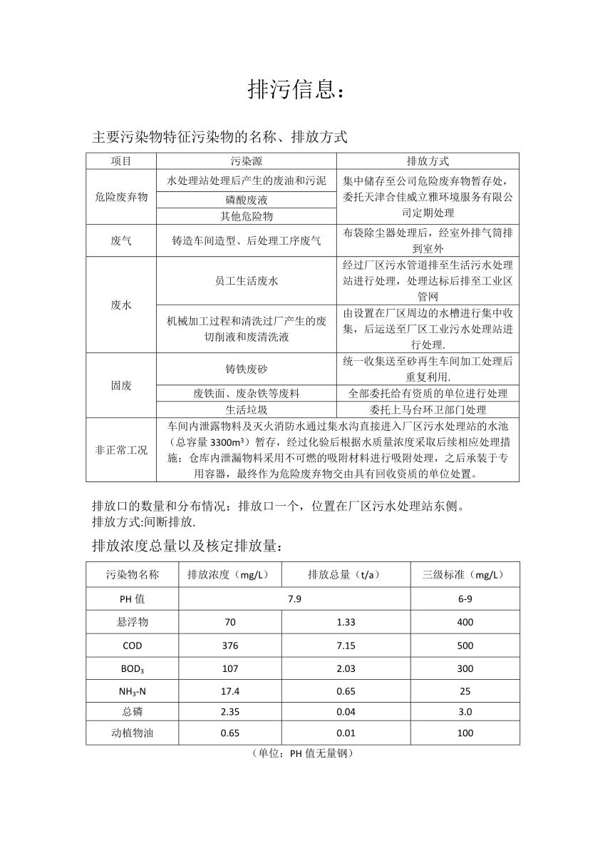 2、发布数据的时限为:生活废水每月对外发布一次、工艺废气和厂界噪声每季度对外发布一次。