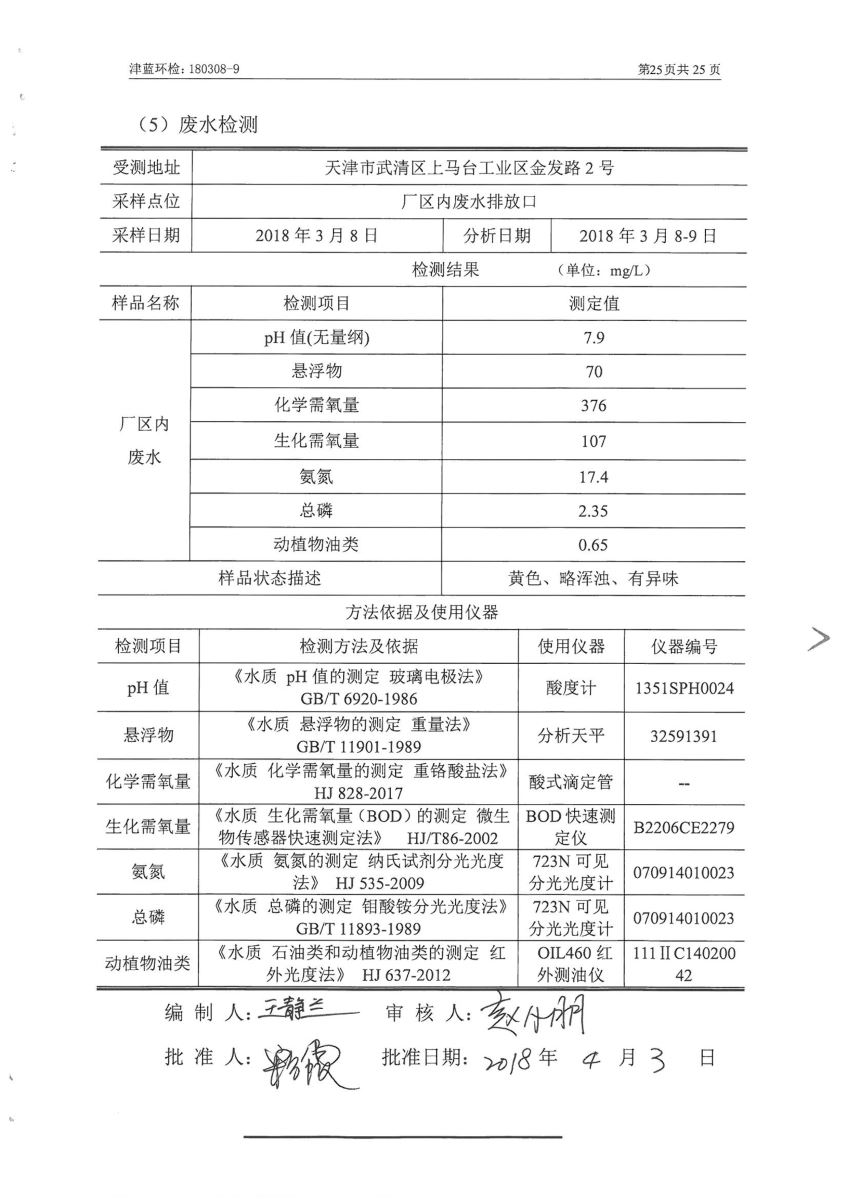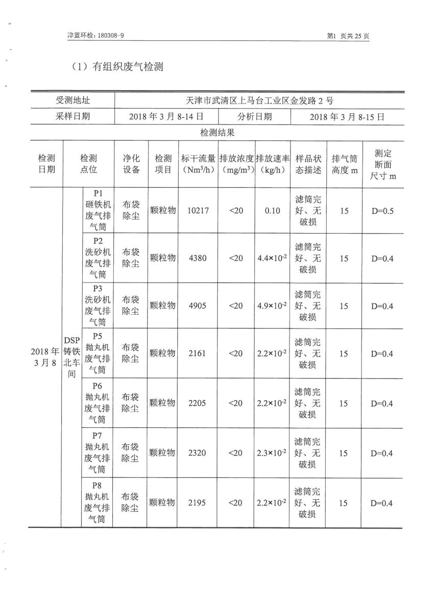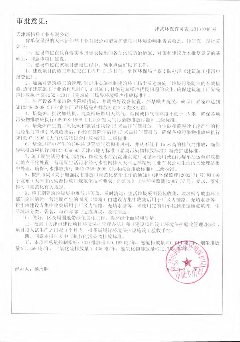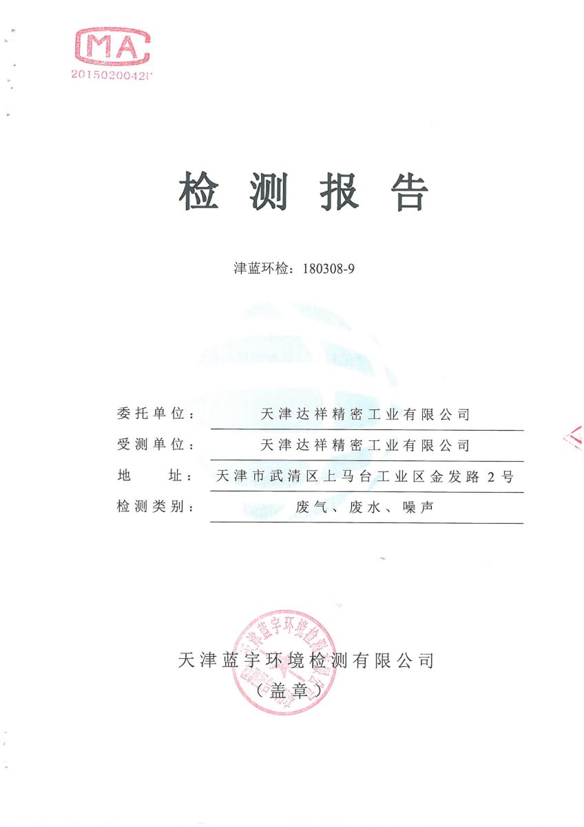 ③ 2018年公司编制了《天津达祥精密工业有限公司工业污染源全面达标排放评估报告》;