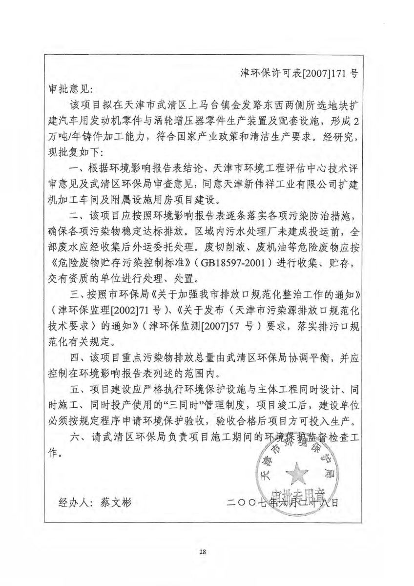建设单位:天津新伟祥工业有限公司